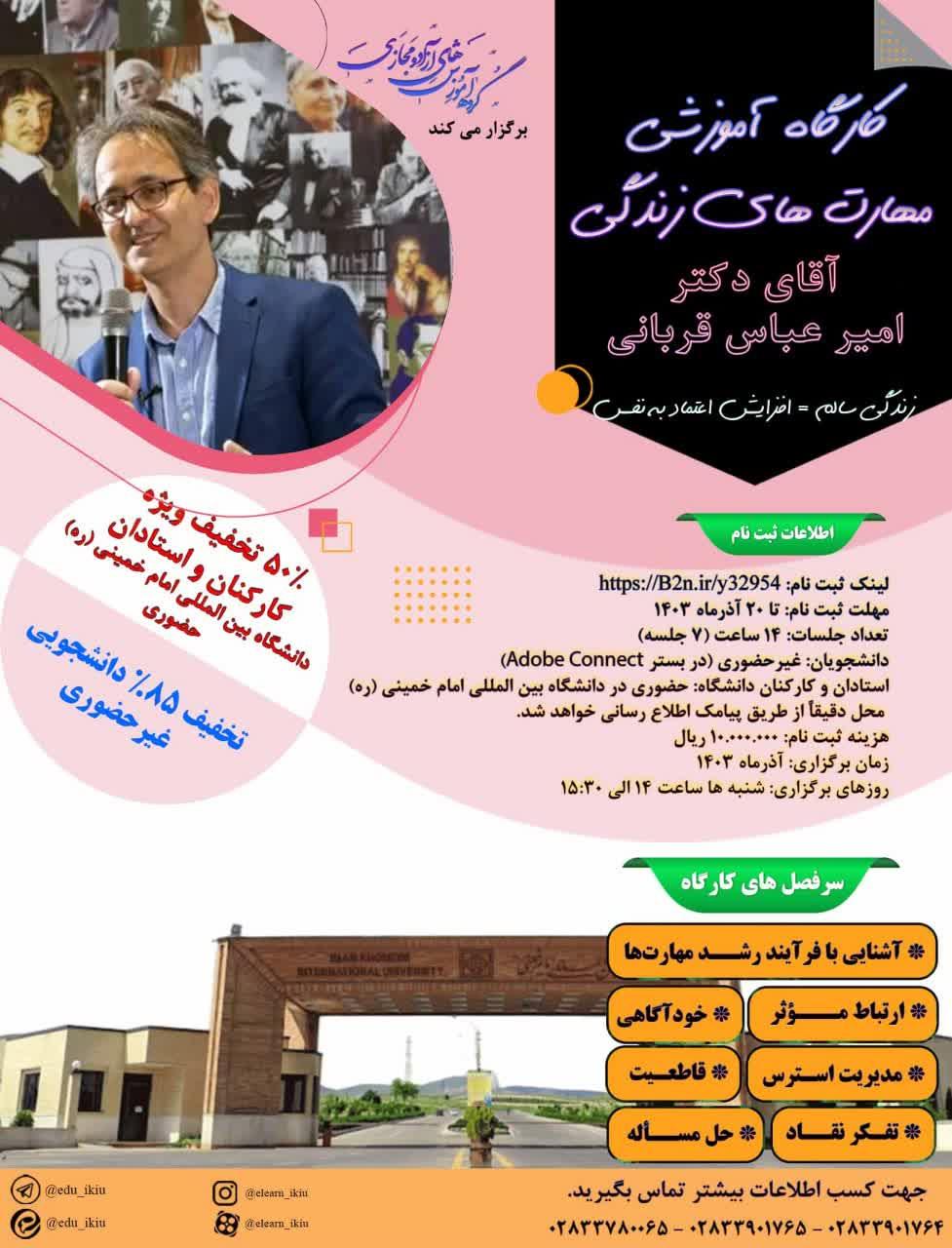 گروه آموزش های آزاد و مجازی دانشگاه بین‌ المللی امام خمینی (ره) کارگاه آموزشی مهارت های زندگی را برگزار می کند.