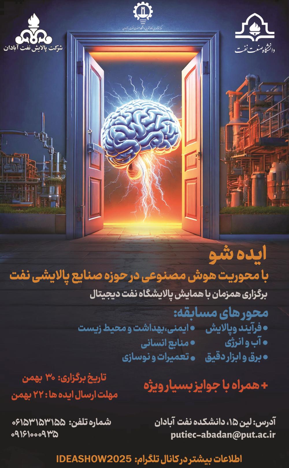 فراخوان "ارائه طرح های نوآورانه در رویداد ملی ایده شو با محوریت هوش مصنوعی در حوزه صنایع پالایشی نفت" .