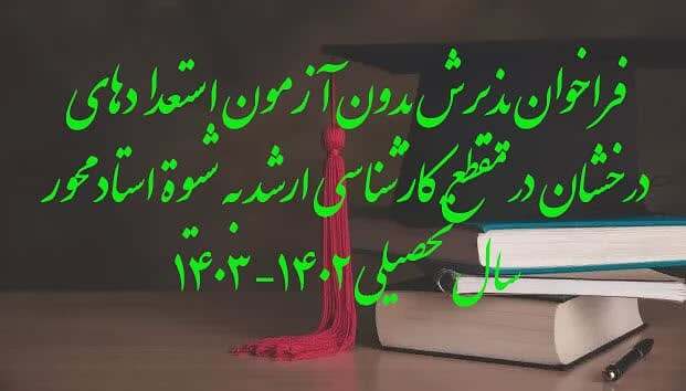 اطلاعیه فراخوان پذیرش بدون آزمون دانشجویان ممتاز در دوره کارشناسی ارشد به شیوه استاد محور در سال تحصیلی 1403-1402