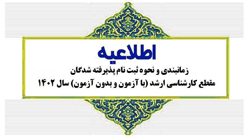 اطلاعيه ثبت نام پذیرفته شدگان مقطع کارشناسی ارشد (با آزمون و بدون آزمون) سال 1402