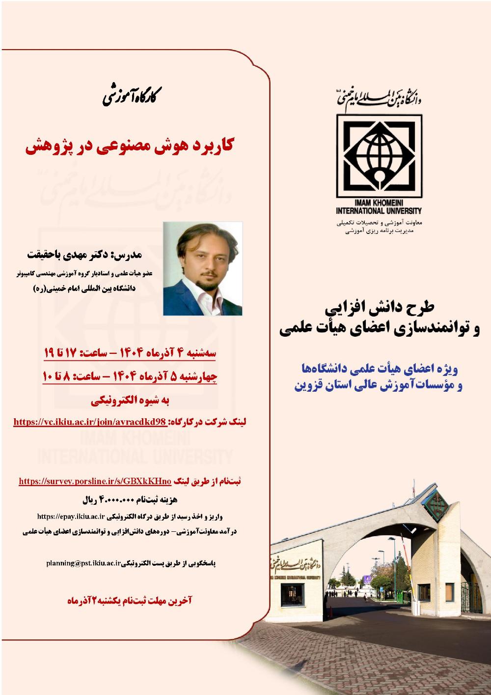 برگزاری کارگاه های آموزشی "کاربرد هوش مصنوعی در پژوهش" - پرتال خبری دانشگاه بین المللی امام خمینی(ره)
