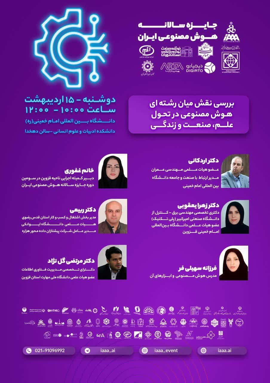 رویداد تخصصی بررسی نقش میان رشته ای هوش مصنوعی در تحول علم، صنعت و زندگی با حضور افراد با تجربه و تاثیرگذار در این حوزه برگزار خواهد شد.