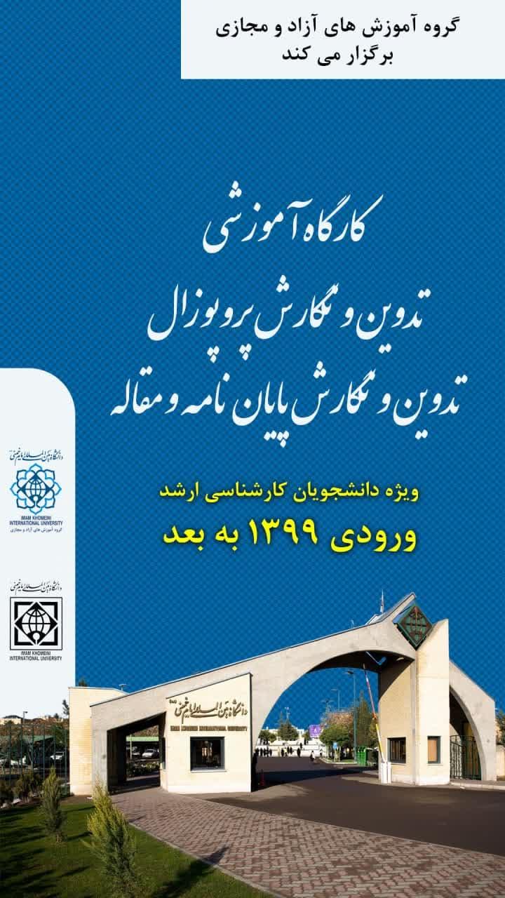 با استناد به شیوه نامه برگزاری دورههای آموزشی پروپوزال و پایاننامه نویسی مدیریت تحصیلات تکمیلی برای ورودیهای 1399 به بعد، گروه آموزشهای آزاد و مجازی مطابق ترمهای گذشته کارگاه آموزشی تدوین و نگارش پروپوزال، پایاننامه و مقاله را برای دانشجویان مقطع کارشناسی ارشد ورودی 1403 به صورت رایگان و از طریق سامانه آموزش مجازی به آدرس https://lms.ikiu.ac.ir برگزار مینماید.
